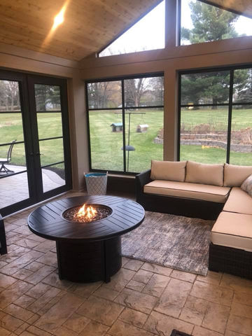 A screened porch has open screening great for warm months, not insulated for winter. A three-season room typically has windows that can be opened or closed, making it usable from spring through fall and sometimes into early winter with a space heater. We build both and can walk you through which makes more sense for how you actually want to use the space.
